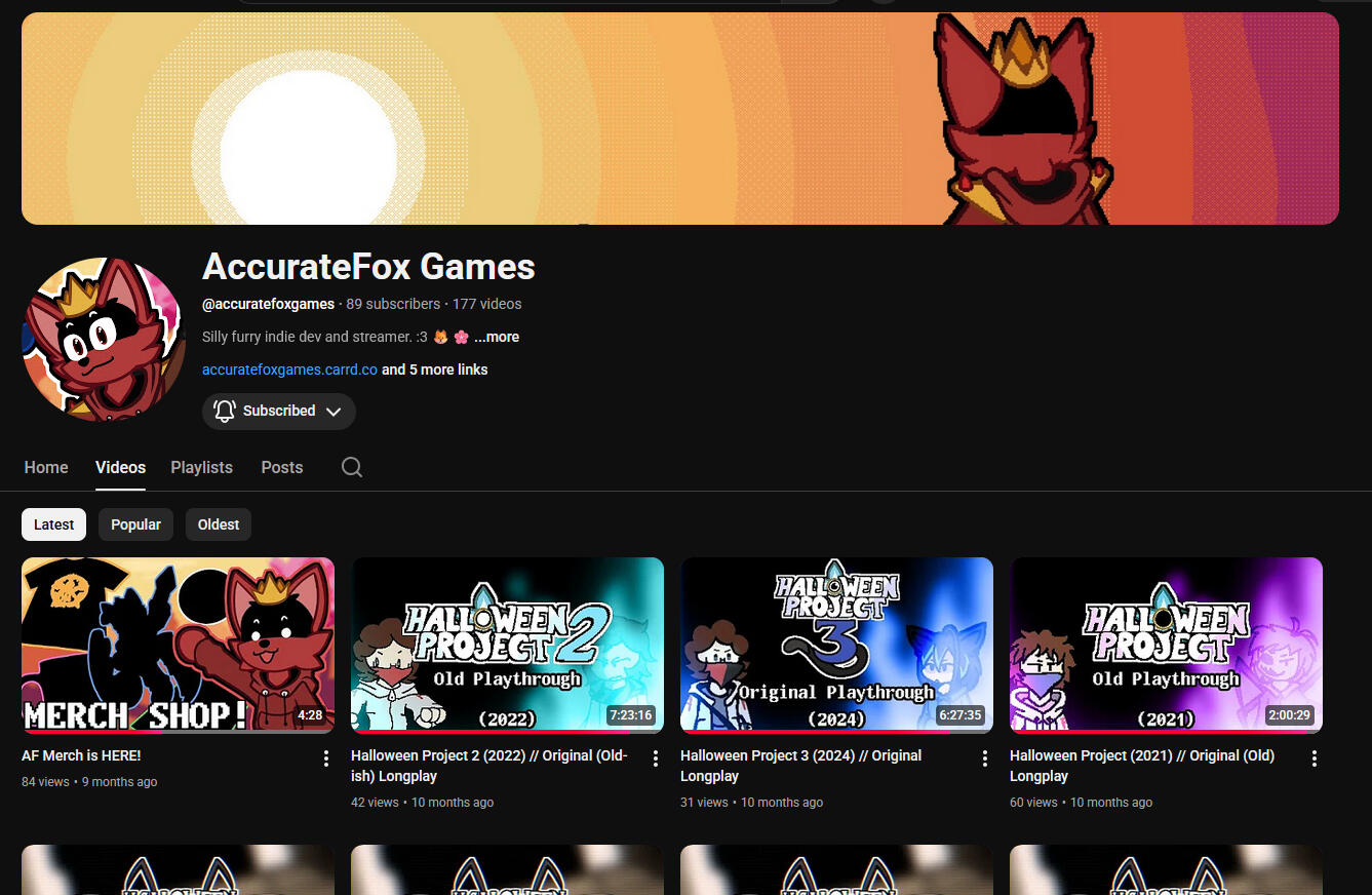 (The YouTube channel only gets a new video when something exciting happens. If you want more frequent updates, check out the Discord server!)